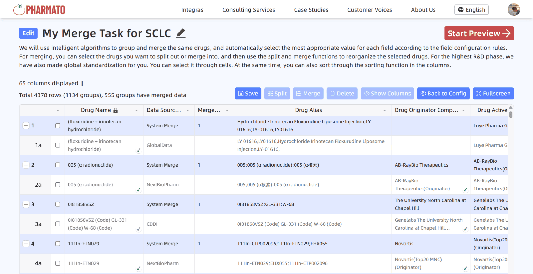 Different drug databases vary in field definitions, formats, languages, and layouts. Aligning this data while ensuring merge quality has traditionally required immense manual effort from analysts.