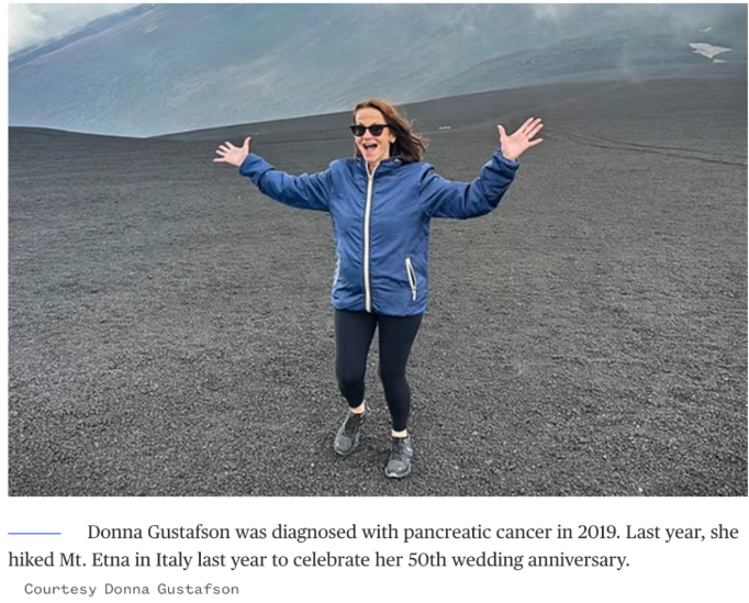 Donna Gustafson, the first patient to enroll in the trial in late 2019, was diagnosed with pancreatic cancer at 66. Despite the initial despair, she underwent surgery and received the mRNA vaccine tailored to her tumor's mutations. Six years later, she is not only alive but recently celebrated her 50th wedding anniversary on Mount Etna in Sicily. "To me, it's an absolute miracle," she remarked.