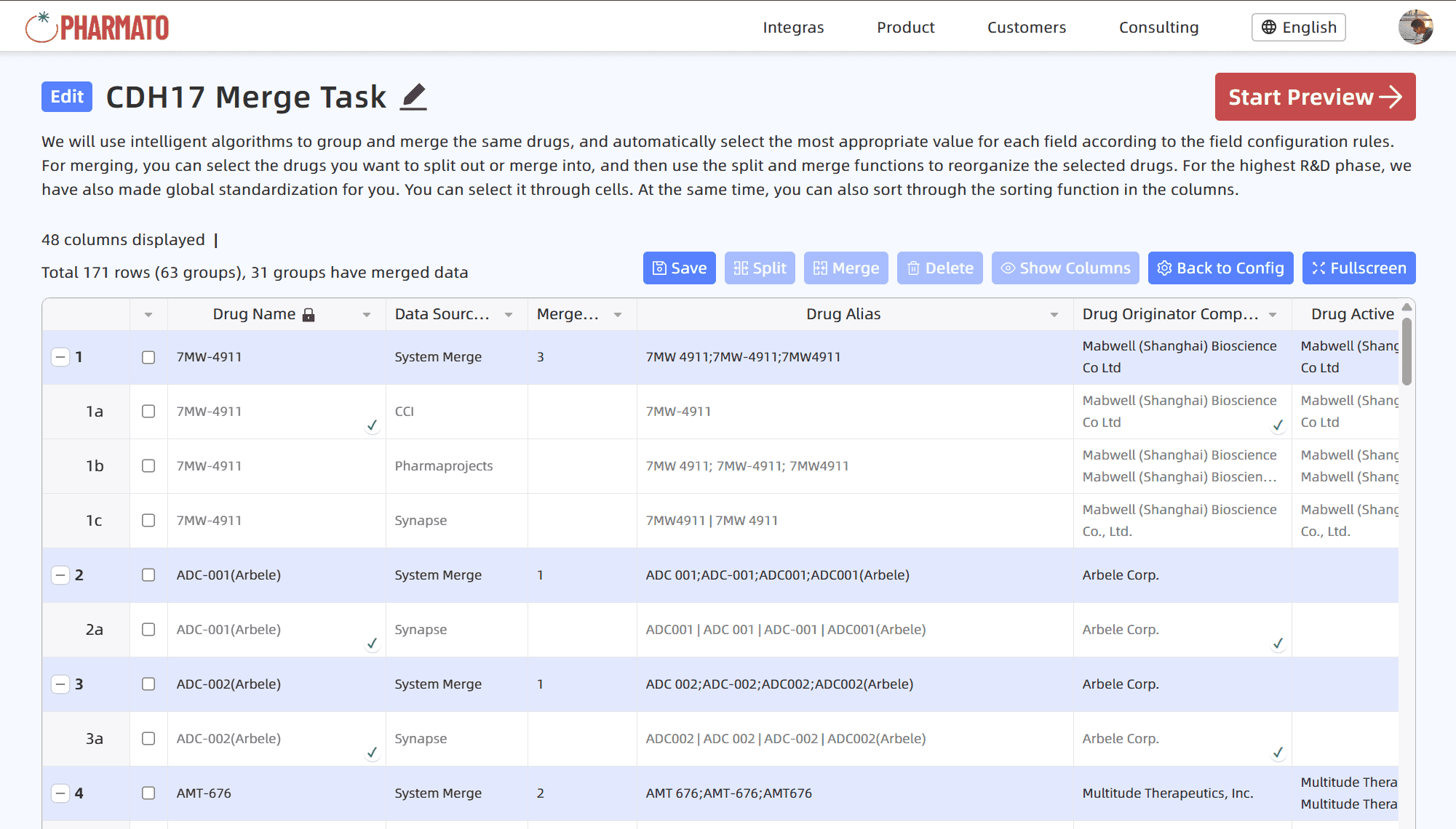 Different drug databases vary in field definitions, formats, languages, and layouts. Aligning this data while ensuring merge quality has traditionally required immense manual effort from analysts.